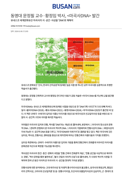 동명대 문정필 교수 · 황정임 박사, <마곡사DNA> 발간