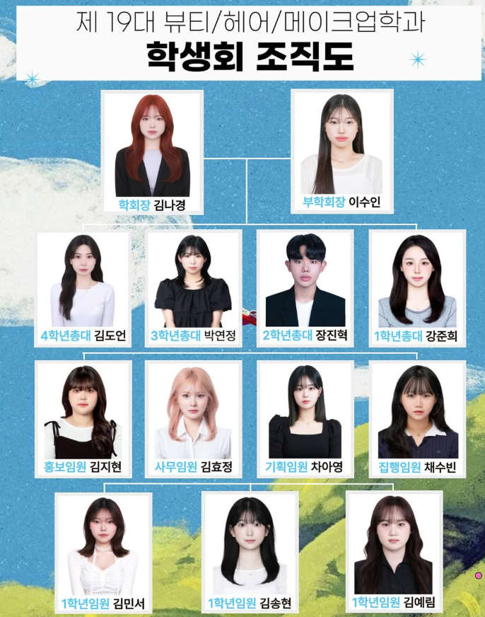안녕하십니까, 제 19대 뷰티/헤어/메이크업학과 학생회 입니다.