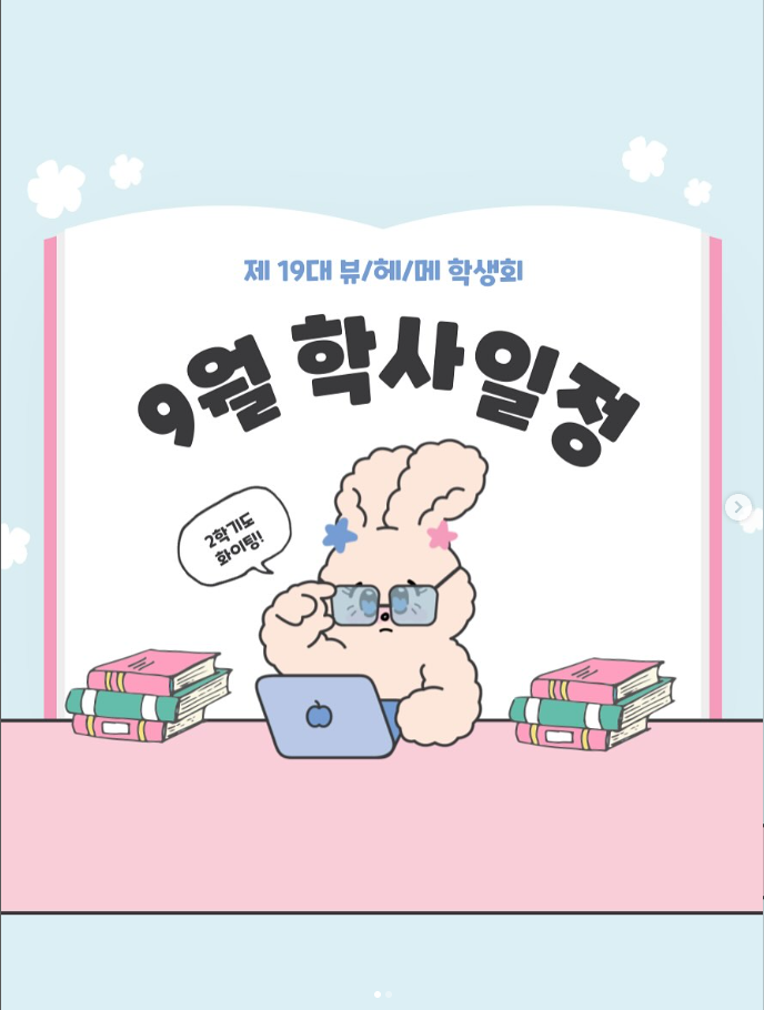 다가오는 한 학기 또한 학우 여러분 모두가 즐겁고 알차게 보내시길 진심으로 바랍니다. 🩵