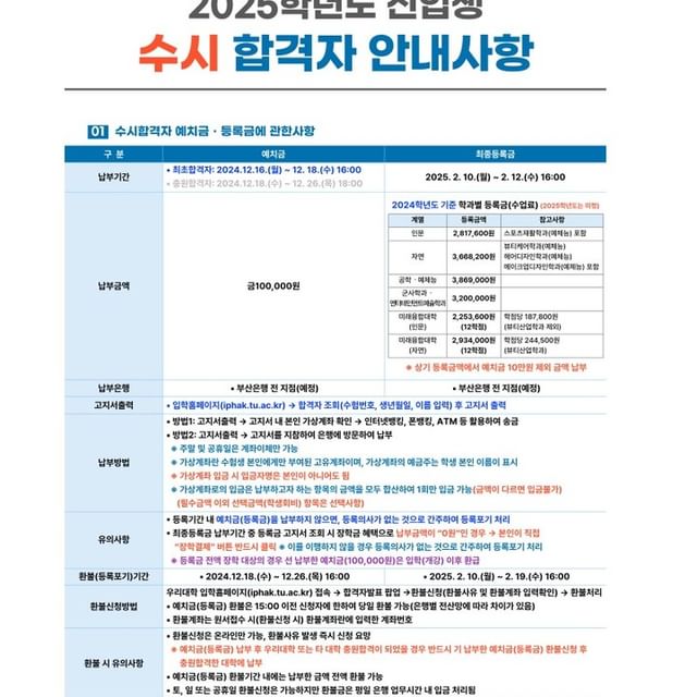 동명대학교 수시 합격자 예치금 납부 안내