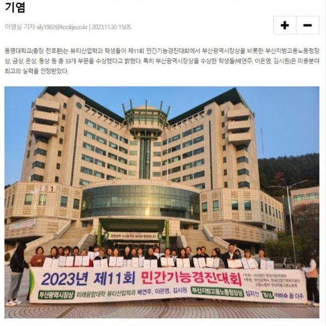동명대 ‘민간기능대회’ 부산시장상 등 33개 부문 수상(부산일보)