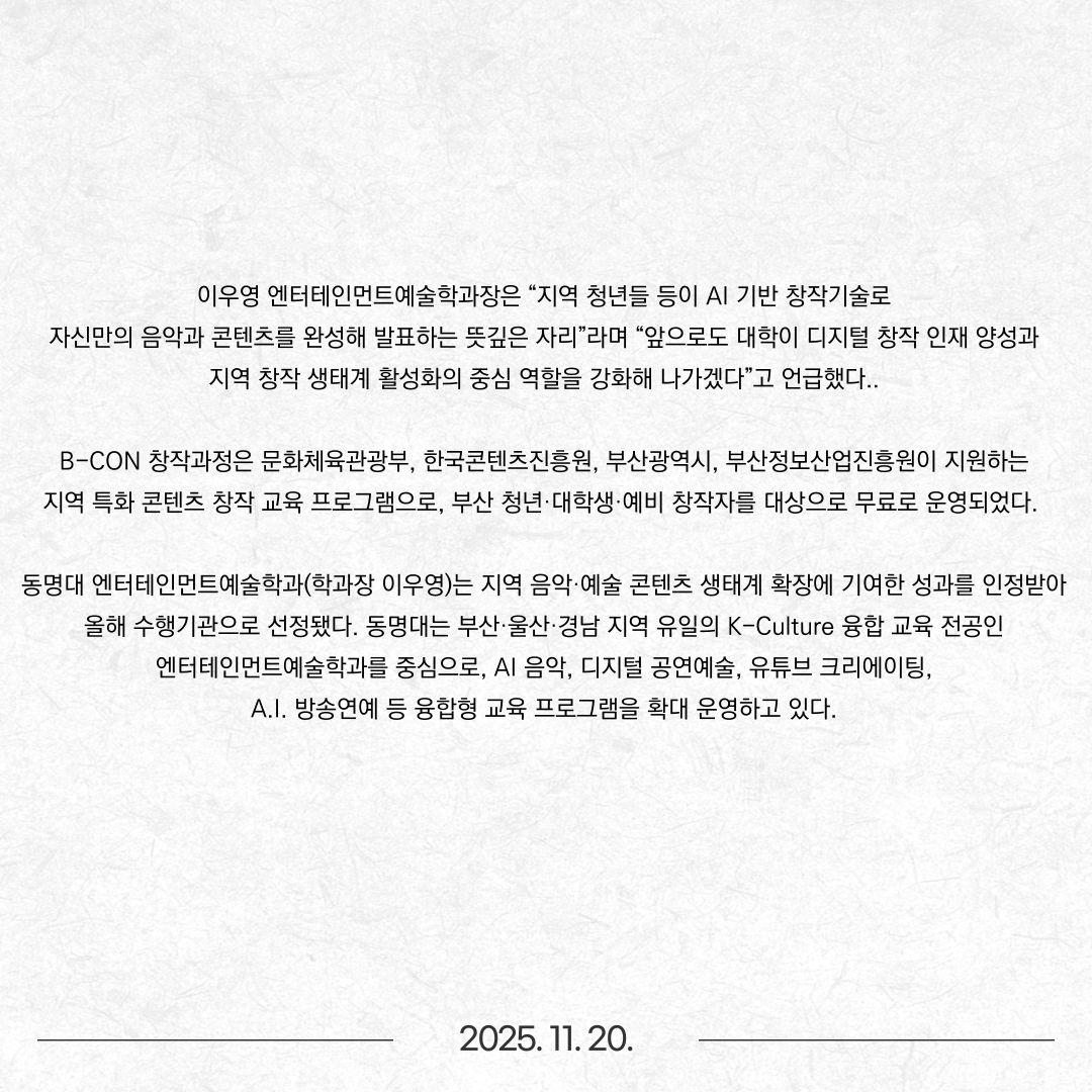 동명대학교 재학/휴학생 대상 TU Records 모집