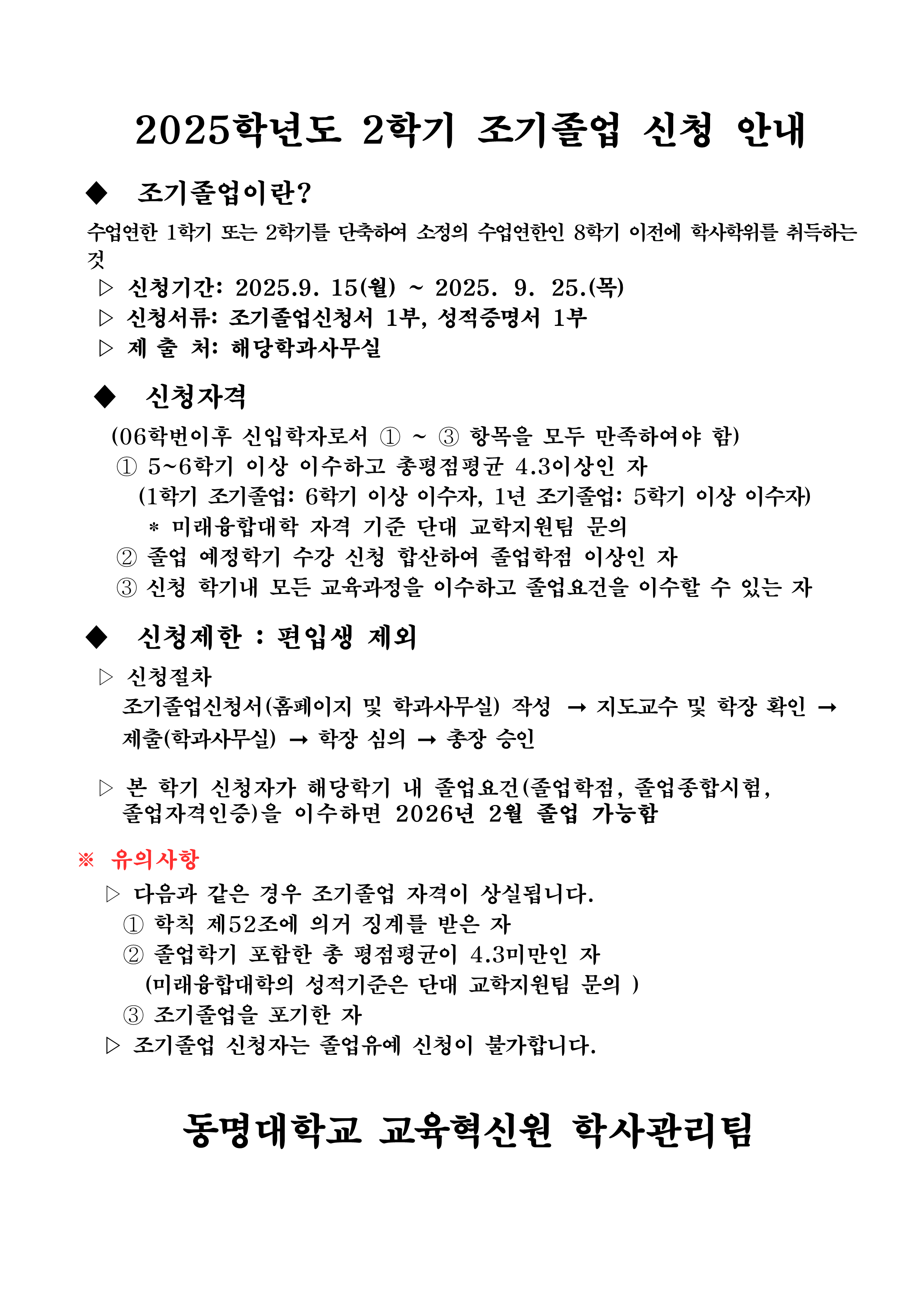 2025학년도 2학기 조기졸업 신청 안내
