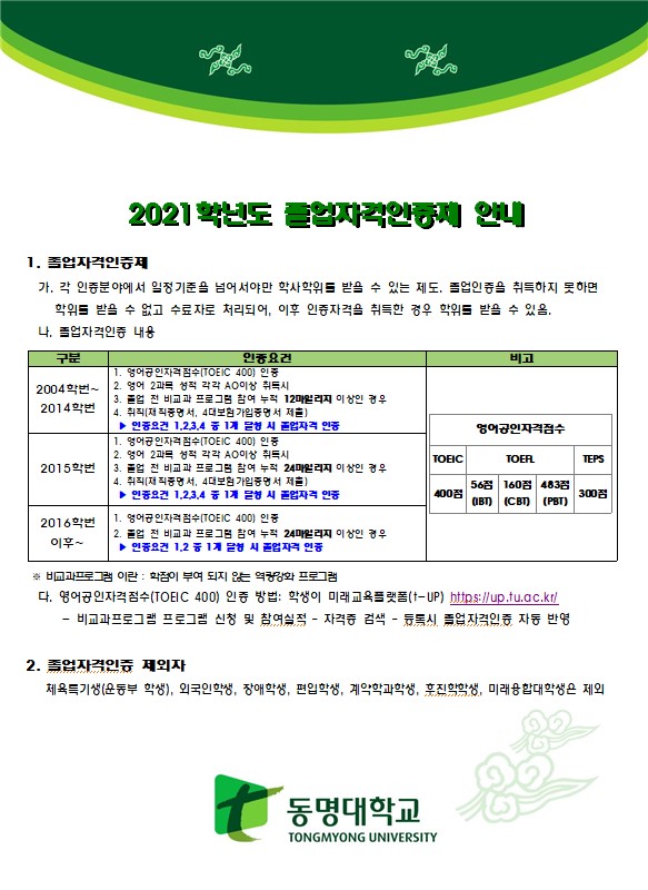2022년 2월 졸업예정자졸업자격인증 미충족자 인증서류 제출 안내