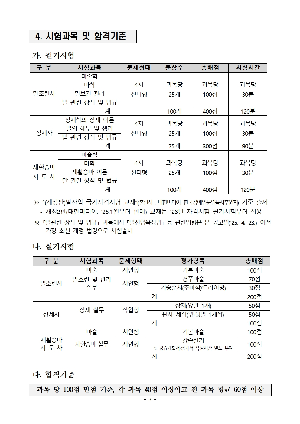 말 산업 국자자격시험(3급) 실시계획 공고