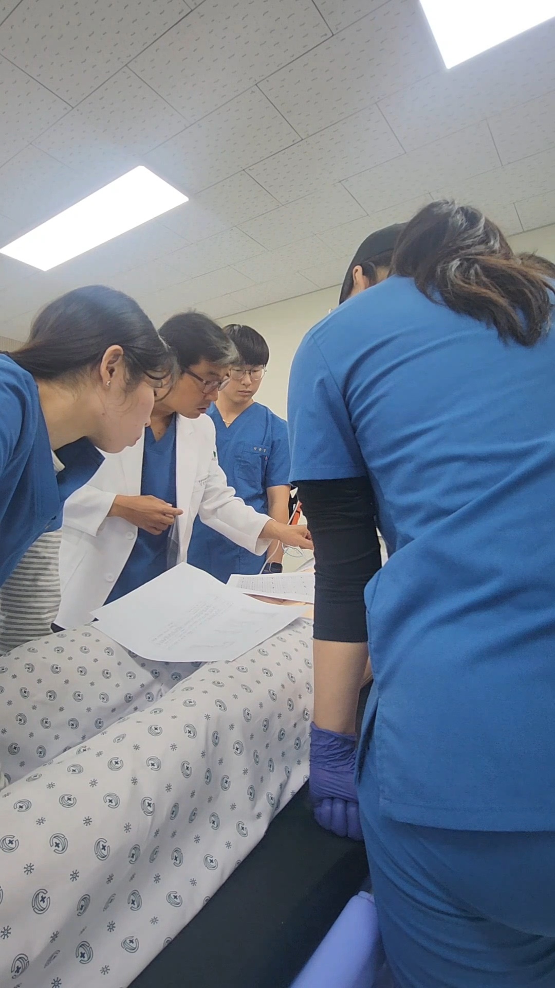 오늘 실습은 정말 놀면서 배우고, 웃으면서 성장하는 시간이었습니다. 처음엔 다들 평소처럼 장비를 확인하고 대기했지만, 분장된 ‘환자’가 등장하자 분위기가 확 달라졌습니다. 열상, 출혈, 멍, 찰과상까지 실감나게 표현된 외상 분장을 보고 학생들은 “헉, 진짜네?”, “어우 소름!” 하면서도 금방 프로페셔널한 모드로 전환했습니다. 각 조는 스스로 움직이며 역할을 나누고 SMR부터 부목 적용, 지혈대와 붕대법까지 차근차근 진행했습니다. 현장에서는 이런 말들이 계속 들려왔습니다: “순환 확인했어요!”, “통증 0부터 10 중 몇이세요?”, “이쪽 더 고정할게요!”, “압박 유지하면서 타이머 스타트!” 분장은 우리 2학년 학생들이.......