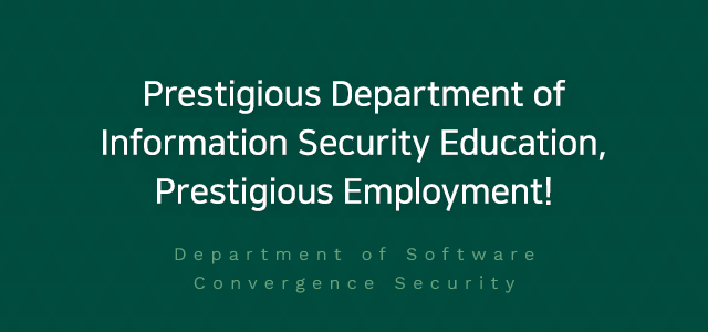 Founded in 2005 as the first in Busan, Ulsan, and South Gyeongsang Province, our department has continued to produce next-generation security leaders (BoB) and has already established itself as a prestigious information security education by achieving employment rates at the top of the country by 2020. In addition to attracting various state-funded projects, including CK projects and software-oriented university projects, we have established on-site education programs including "Hacking Response Training Center" to concentrate all our capabilities on fostering working-level personnel. The information security sector is already recognized by many domestic and foreign media as a promising future job and is recognized as a key area of the software-based Fourth Industrial Revolution. Therefore, our department is preparing for another huge leap forward with you by converging Al-related technologies based on the long history and tradition of fostering professionals who will lead the future society. We'd like you to join us for this bright future.