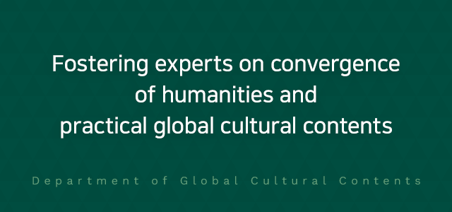 The cultural content industry, a new growth engine of the 21st century, requires development planning and production marketing personnel in various fields such as film, animation, games, storytelling, characters, festivals, theme parks, and cultural planning. This department is to train cultural contents experts who meet the needs of new future industries. It focuses on creative storytelling through the development of materials from various humanities and understanding of East and West cultures and the need for a deep understanding of Japanese culture and English education related to contents to match the cultural trend of the U.S. The goal is to foster the leaders of the next generation, who have extensive knowledge in theory and practice, to provide academic education based on humanities and languages (English and Japanese), and to foster global cultural talents in the field of cultural content that encompasses the digital society.