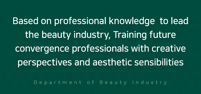 While beautiful and healthy life is emerging as an important point of view the status of the beauty industry is increasing. The goal of education in the beauty industry department is to train "future convergence experts who can integrate the beauty industry and the knowledge-intensive cosmetics industry based on scientific knowledge to lead the beauty industry by using functional elements of the field." With the goal of conducting beauty service and cosmetics-related industries and start-ups, we operate practical courses, short-term field training, and start-up connections to produce competitive, field-oriented, convergent talents.