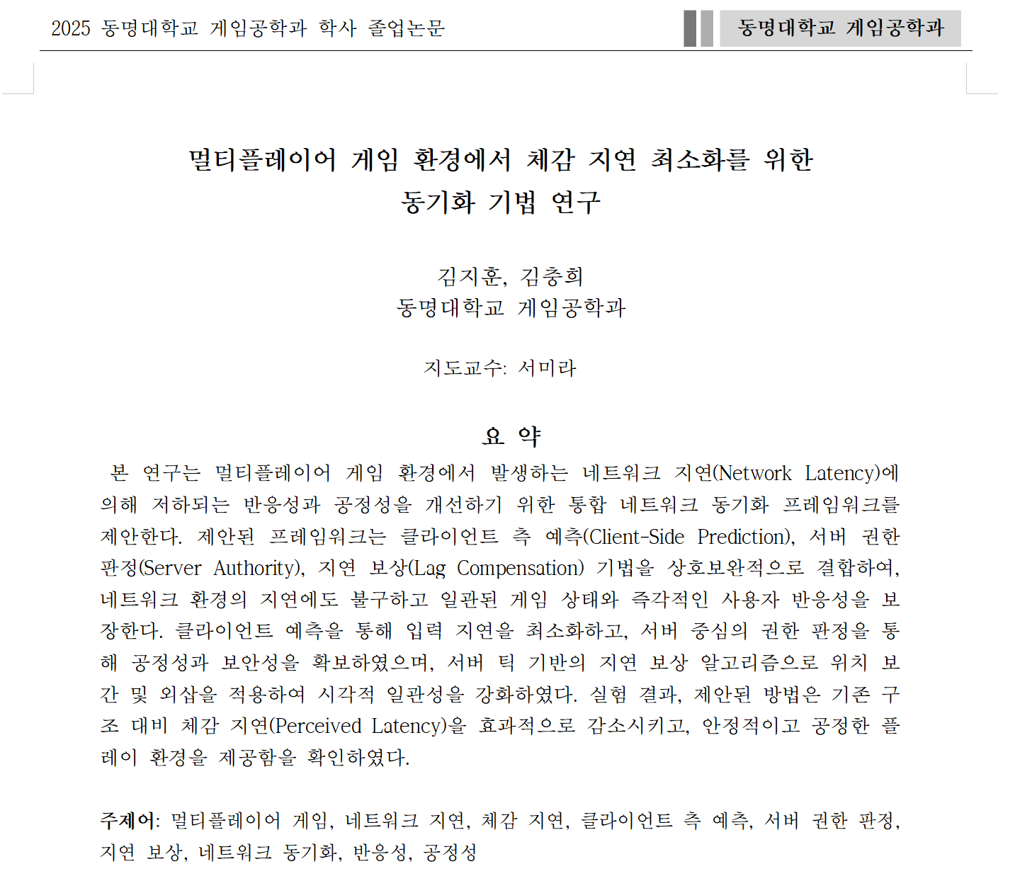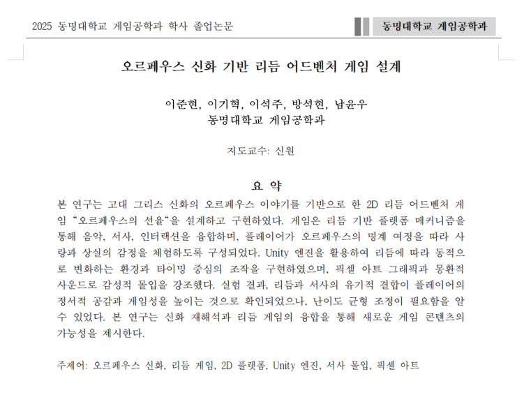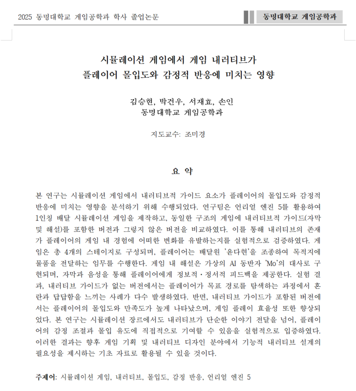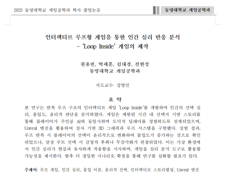2025년 게임공학과 졸업 연구 요약