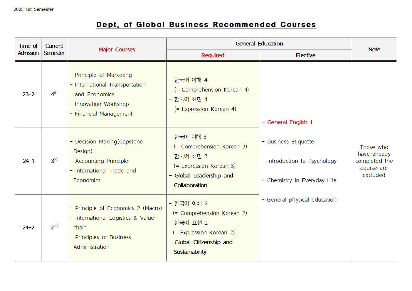 - * It is highly recommended to take each course according to its designated semester as outlined in the curriculum for both major and elective courses.