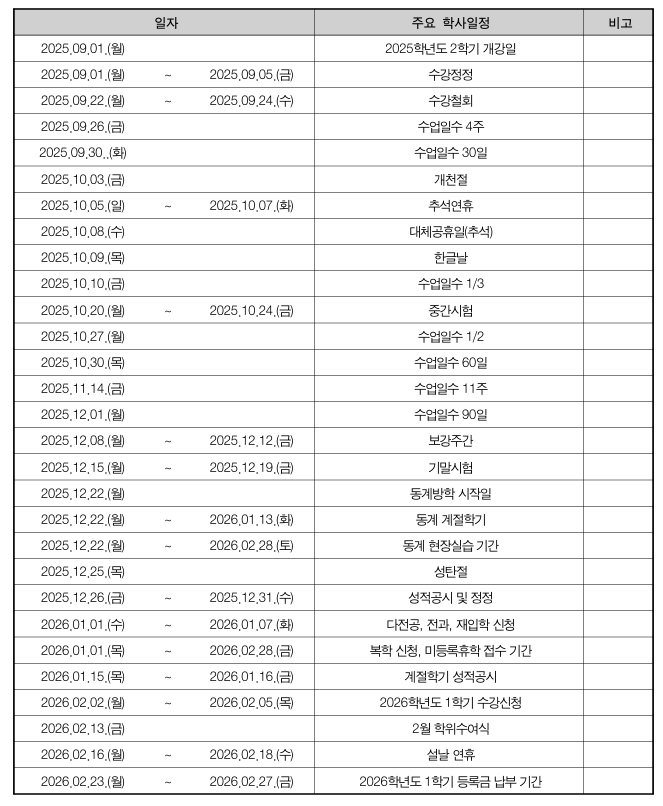 Here is the academic schedule for the 2025 Fall Semester.