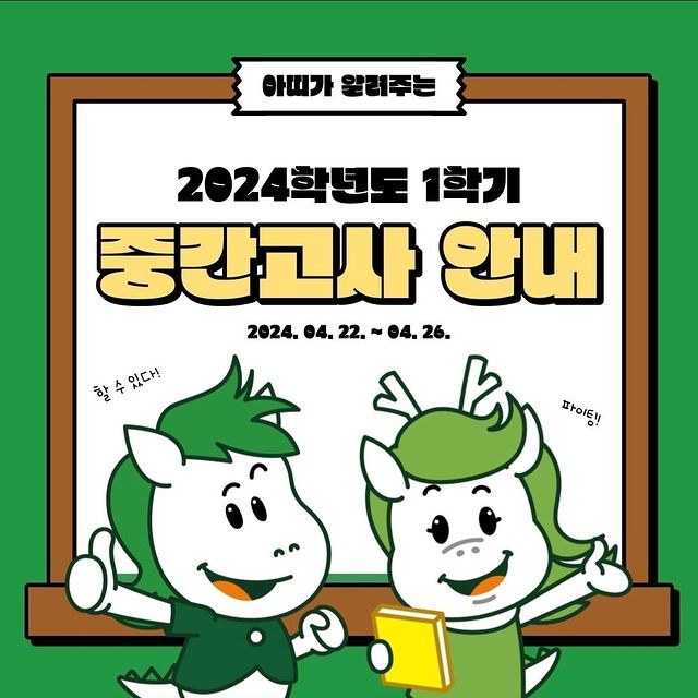 ▪️2024학년도 1학기 중간고사 기간: 04/22 ~ 04/26