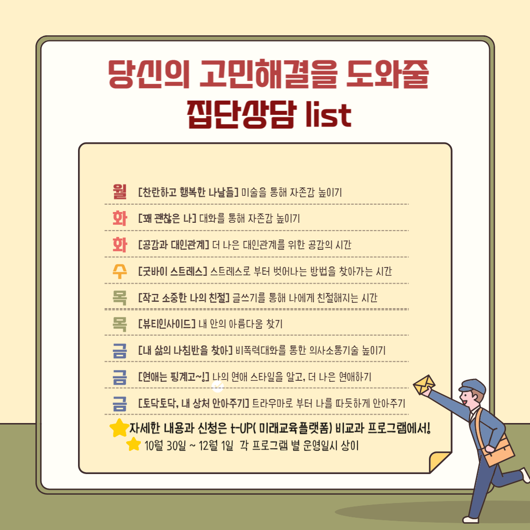 [학생상담센터]2023학년도 2학기 집단상담 프로그램 모집 안내