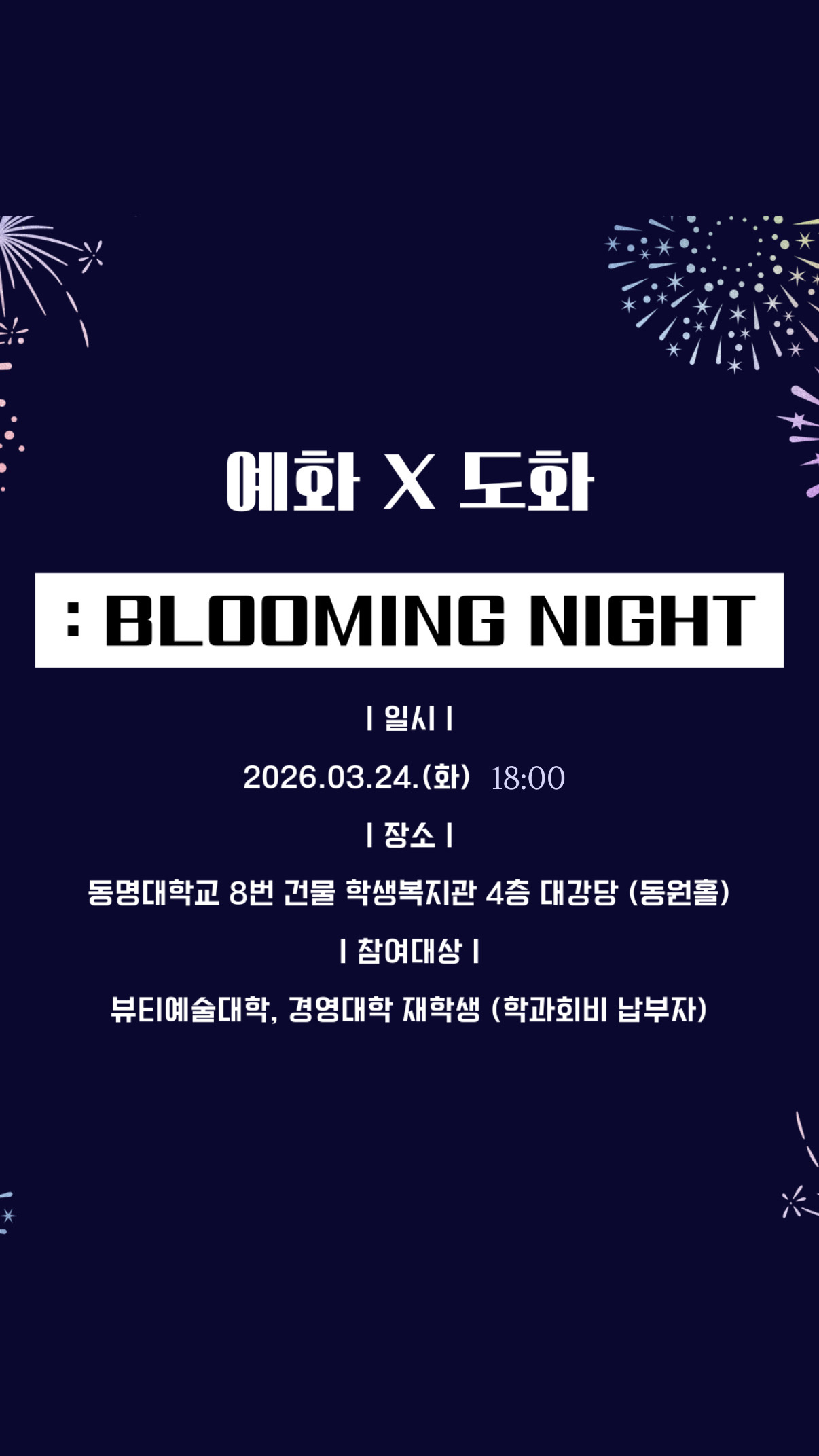 Blooming Night (예화 뷰티예술대학 & 도화 경영대학 연합 밤행사) 안내