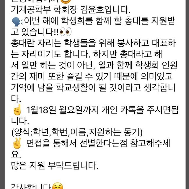 • 2025년 하계 글로벌 어학연수 프로그램 지원자 모집 0. 프로그램 목적: 우리대학 재학생의 국제화 역량 향상 (글로벌 역량강화 프로그램) 1. 신청기간: 2025.05.23.(금) ~ 05.30.(금) 2. 지원방법: 1) 이메일 접수(talery0218@tu.ac.kr) 2) 방문 신청 (동명대학교 국제교류처, 국제교류팀 / 21번 건물 101호) 3. 신청서류 1) 참가신청서 및 지원동기 1부 ** 지도교수 추천서는 필수 제출서류는 아님 2) 여권사본 (여권이 없는 학생은 반드시 여권 발급 신청 필요) 3) 재학증명서, 성적증명서 4. 연수안내 언어 국가 연수기관 연수기간 인원 영어 필리핀 세부 Cebu Institute of Technology – University (CITU) 2025.06.30 ~ 2025.07.25. (총 4주간) 16명 영어 필리핀 클락 System Plus College Foundation (SPCF) 2025.06.30. ~ 2025.07.25. (총 4주간) 20명 * 일정은 항공권 및 현지사정에 의하여 변경될 수 있음 * 연수특징 - 1:1 맞춤형 어학연수 프로그램 운영 (필리핀 어학연수의 최고 장점) - 레벨별 그룹 수업 진행 - 현지 문화탐방 프로그램 운영 등 5. 지원자격 1) 우리대학 재학생 중 어학연수에 관심있는 학생 누구나 (휴학생 및 졸업생 지원 불가) 2) 장학금 지급 규정에 위배되지 않으며, 학칙에 징계사실이 없는 학생 3) 여권발급 및 해외여행에 문제가 없는 학생 6. 연수비용 1) 교육비, 숙소비, 현지 문화체험비, 왕복항공비, 해외여행자보험비용 지원 (항공비의 경우 비용에 따라 개인부담 발생 가능) ** 개인용돈 및 현지체재비, 항공비 일부 본인부담 (SSP 비용 개인부담 - Special Study Permit, 기타 현지비용 개인부담) 7. 면접진행 1) 1차 서류전형 합격자에 한하여 진행 2) 일정: 2025.6.04.(수), 10:00 ~ (국제교류팀 21번 건물 1층 면접실) * 1차 서류전형 50%, 2차 면접전형 50% ※ 면접일정은 지원현황에 따라 변동 될 수 있음 (개별 공지예정) 8. 합격자 발표 : 2025.06.05.(목), 개별통보 및 홈페이지 공지 9. 문의처: 국제교류팀 (국제산학협력관 21번 건물, 1층 101호) Tel: 051 629 3023 / 3014 10. 기타: 영어를 못하는 학생들도 연수프로그램을 신청하시는데 전혀 문제가 없으므로, 평소에 외국어(영어)에 관심있는 학생들분의 많은 지원 부탁드립니다. VIEW DETAIL