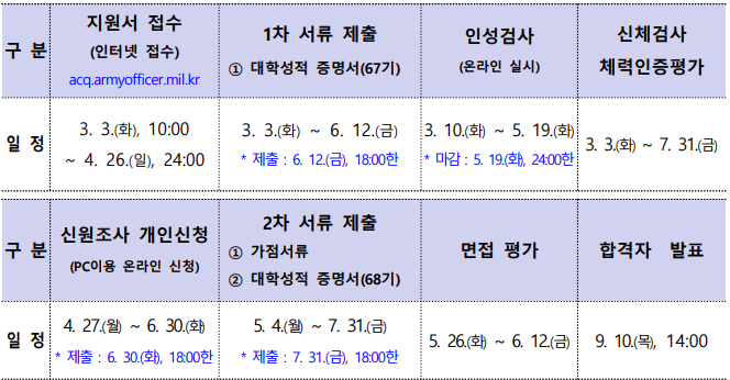 (육군) 2026년 전반기 육군 학군사관후보생 67·68기 선발계획 공고