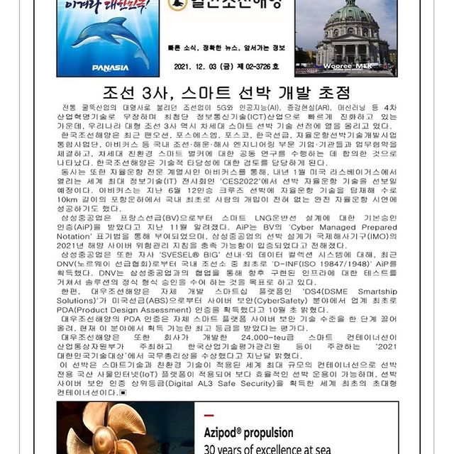 2021년 12월 3일 금요일 일간조선해양일보입니다.