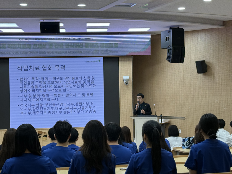 다양한 현장 경험담을 나누어 주셨습니다. 더불어 대한작업치료사협회 부울경지회는 동명대학교 작업치료학과의 발전과