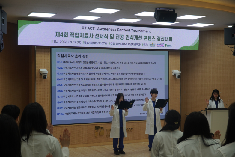저희 작업치료학과에서는 3월 26일 목요일, 2026학년도 작업치료학과 제4회 작업치료사 선서식 및 전공인식 개선 경진대회를 진행하였습니다! 😊