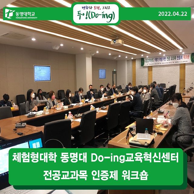 동명대학교(총장 전호환) Do-ing교육혁신센터는 지난 4월 20일 오전, 온·오프라인을 활용하여 전공교과목 인증제 참여 교수진을 대상으로 워크숍을 가졌