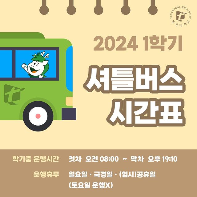 🚍2024학년도 1학기 셔틀버스 시간표🚍