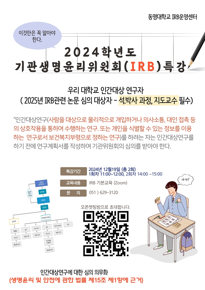 2024학년도 기관생명윤리위원회(IRB) 특강 안내(Zoom)